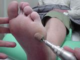 向かって過度に肥厚増殖する現象で、主として足指の関節や足指間にできやすいです。白色または黄白色の円形状をなす事が多く、